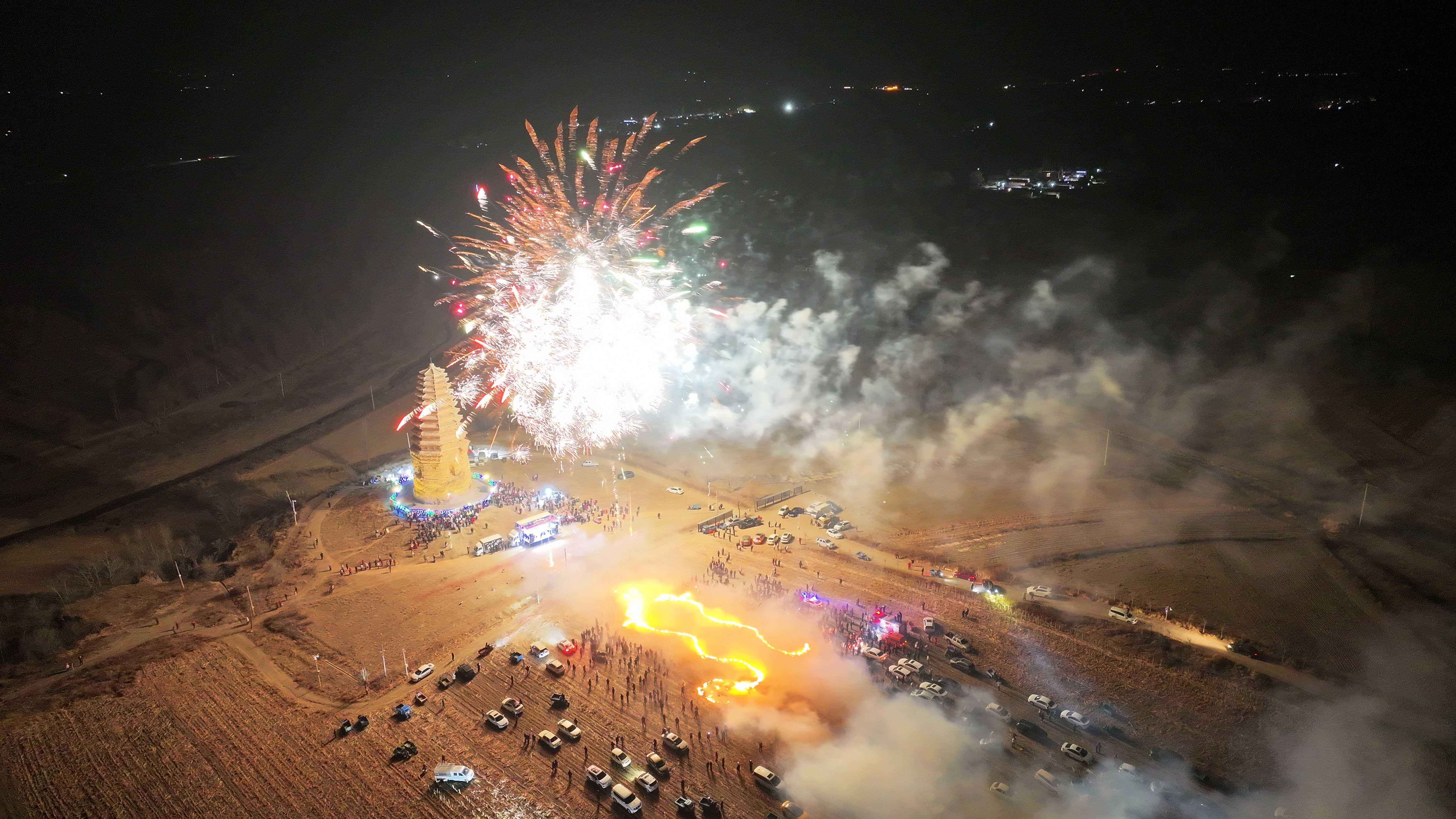 在“撒龙灯祭塔”仪式上,村民们怀着虔诚之心,点燃祭香、诵读祭词,亲手撒下五谷杂粮,寄托着对风调雨顺、五谷丰登的期盼;璀璨的烟花在夜空绽放,点亮的火龙环绕白塔,每一项仪式都承载着当地群众对美好生活的向往,也彰显着对先民文化的敬畏与传承。
