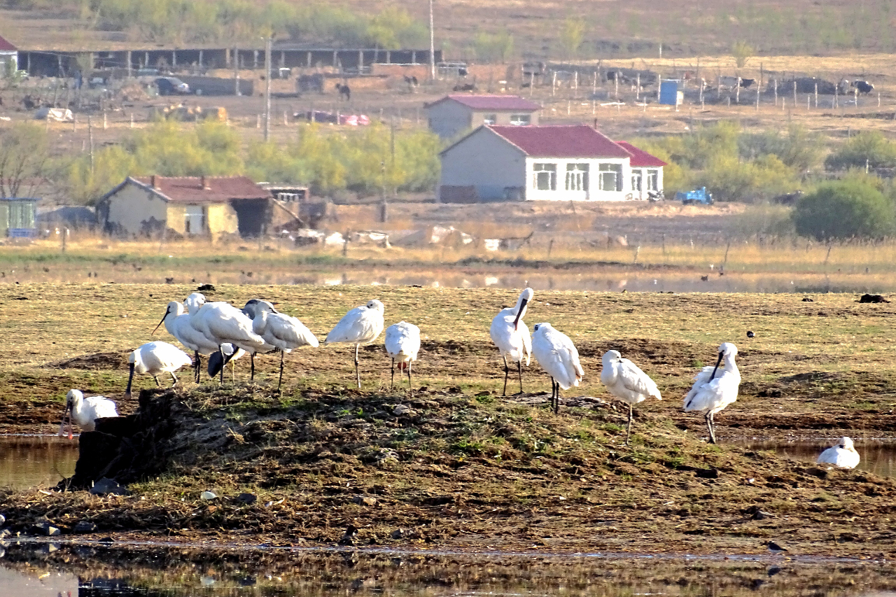 有30多只国家二级保护野生动物——白琵鹭,成群结队出现在阿鲁科尔沁水域。它们在滩涂上悠然散步、嬉戏,或是驻足守望、认真捕食,或是在空中翩翩飞舞。这次的发现是近30年来,种群和数量最多的一次,它们在阿鲁科尔沁旗停留觅食栖息及繁殖。