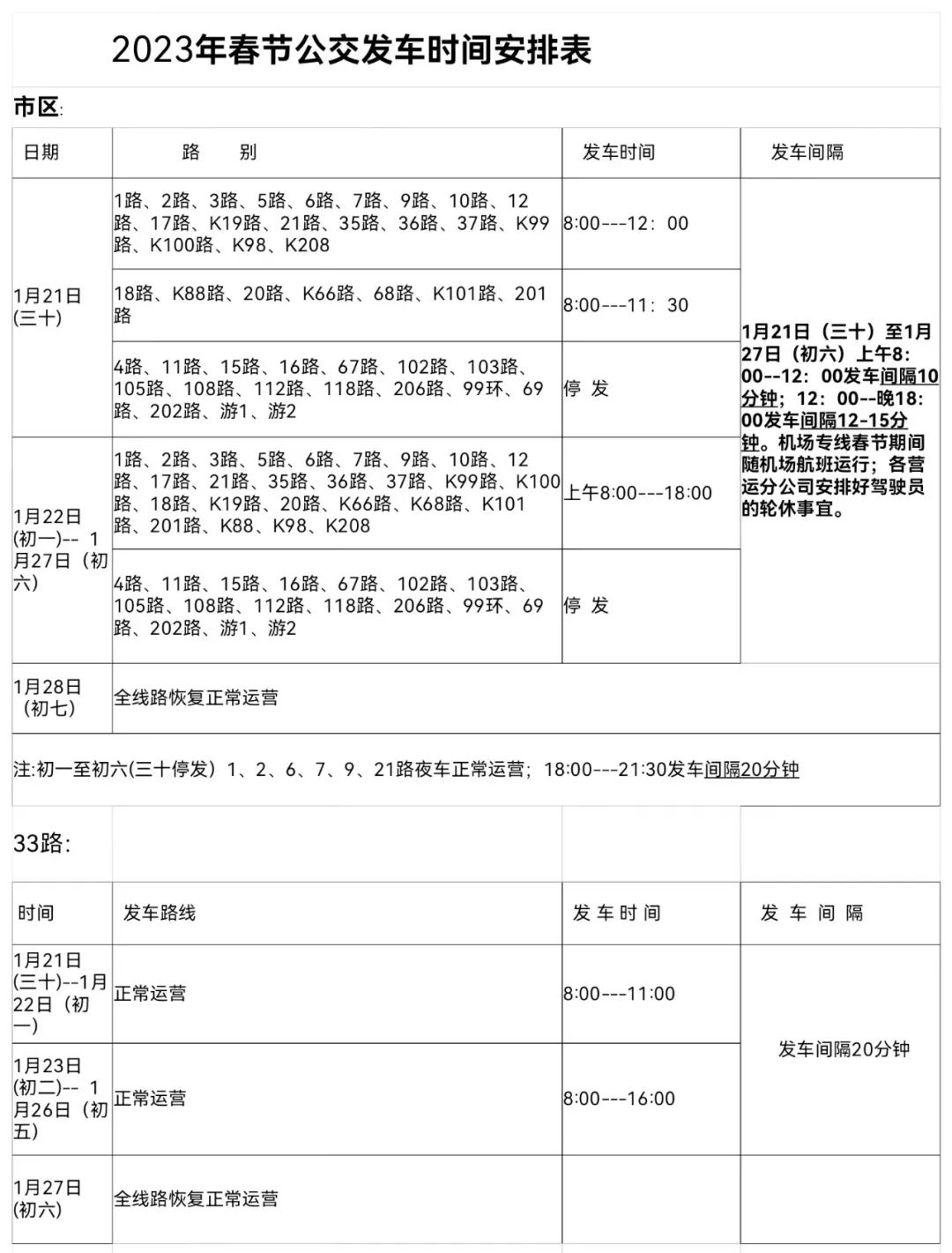 2023年春节公交