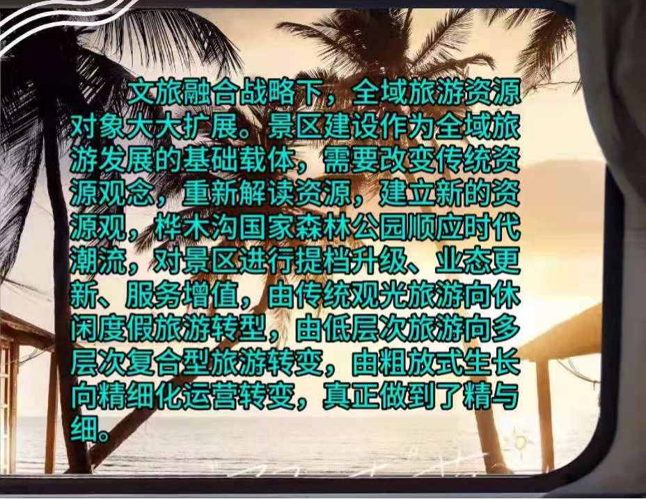在大文旅,新文娱的时代,桦木沟国家森林公园因地制宜,结合旅游景区特点,将景区建设与自然环境相融合,注重打造自己的“千亩花海“品牌,围绕自身最核心的文化元素,进行景区文化重塑,从本土生长出来的又”超然本土“之上的业态被培育起来,彩虹滑道、马术演艺、喊泉、飞行基地(三角翼、直升机)、高端木屋住宿等业态应运而生,构建了一套以人为核心的旅游服务体系,游客来到这里能看、能玩、能参与、能体验、能住宿、能用餐、能购物、能拍摄,极大的满足了游客对旅游产品休闲、体验、互动等需求,从而满足游客多样化的需求,真正做到了精与细。
