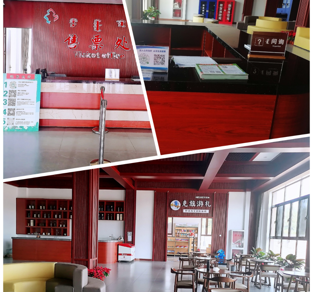 桦木沟国家森林公园游客中心建筑风格与景区环境相协调,宏伟壮观,特色鲜明,融旅游咨询、时尚水吧、商务洽谈、售票服务、便民服务、游客投诉、文创特产购物店于一体,为游客提供轻松、舒适、优雅的多功能服务平台。