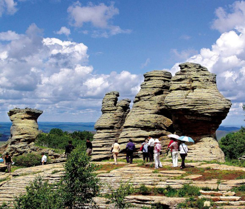 专家们称之为世界奇观 - - 中国阿斯哈图石林。 石林背靠一望无垠的桦树林海,峥嵘奇峻,千姿百态,放眼望去,或如宝塔古堡,或如灵禽神兽,栩栩如生,浑然天成,令人拍案叫绝。站在北大山上,远望石林,犹如古代城堡,平地凸起,峥嵘险峻,沧桑破败。近品石林,千姿百态,如塔、如笋、如人、如兽,呼之欲来,趋之欲动,犹如人工刻意雕琢,使人惊叹大自然的鬼斧神工。