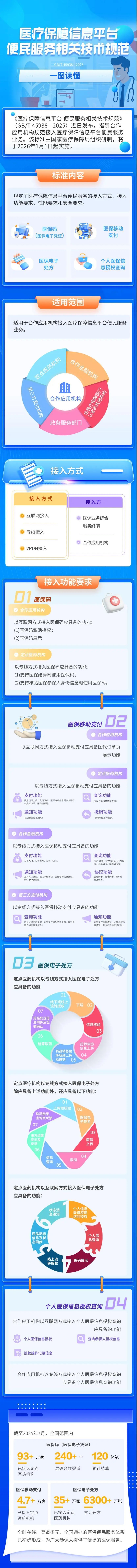截至今年7月,全国接入医保码(医保电子凭证)的定点医药机构超过93万家、接入展码合作渠道的240余个,累计结算120亿笔;接入医保移动支付的机构达4.7万家;接入医保电子处方的机构超过35万家,累计开方6300余万张。