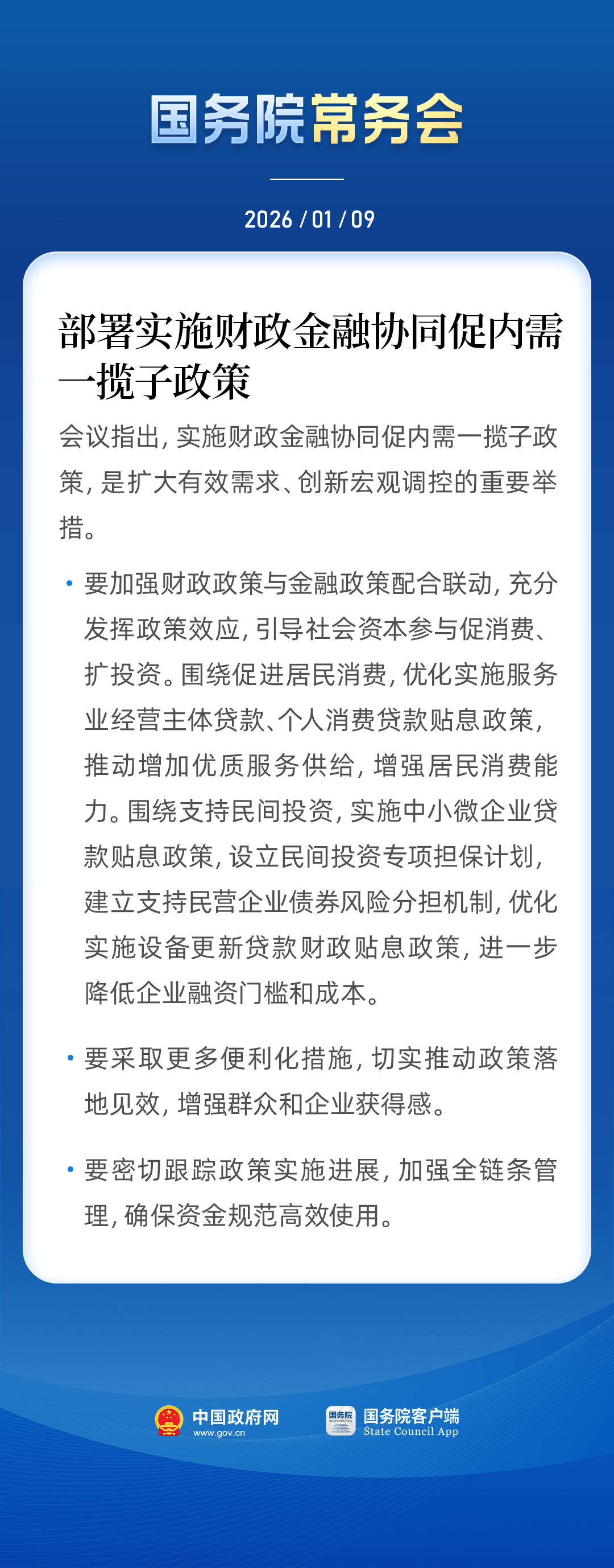 国务院常务会:部署实施财政金融协同促内需一揽子政策
