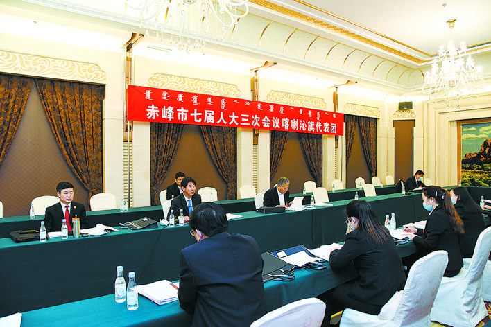 喀喇沁旗代表团代表正在审议市法检两院工作报告