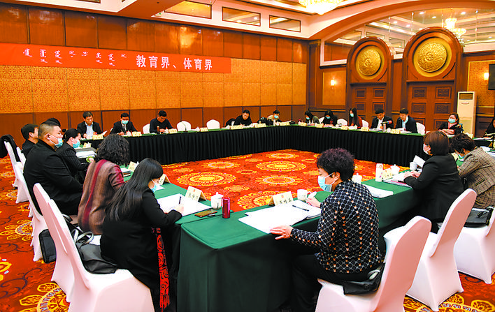 教育界、体育界委员在认真讨论提案工作情况报告