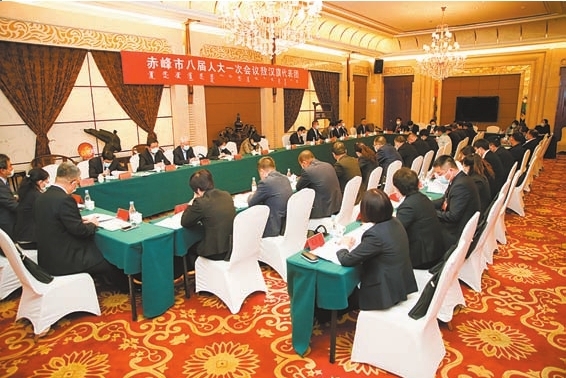 在敖汉旗代表团,人大代表们审议政府工作报告