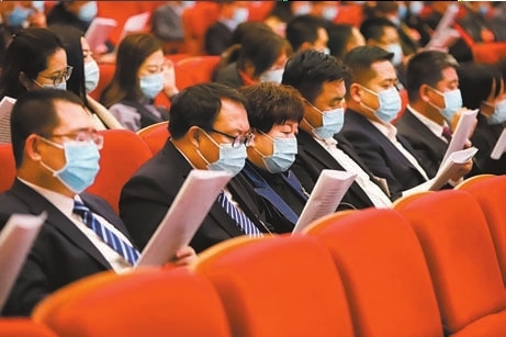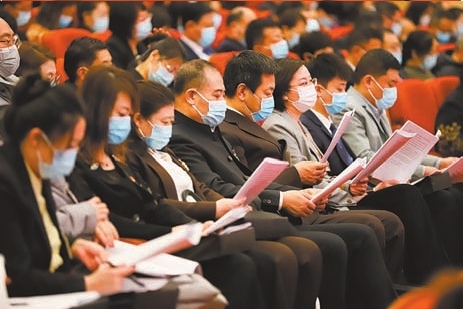 代表们认真听取政府工作报告