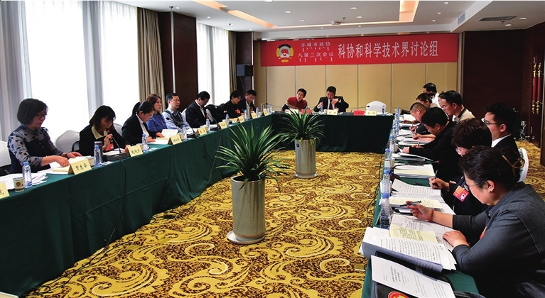 参加政协赤峰市第八届委员会第三次会议的科协和科学技术界的委员们在讨论常务委员会工作报告和提案工作情况报告