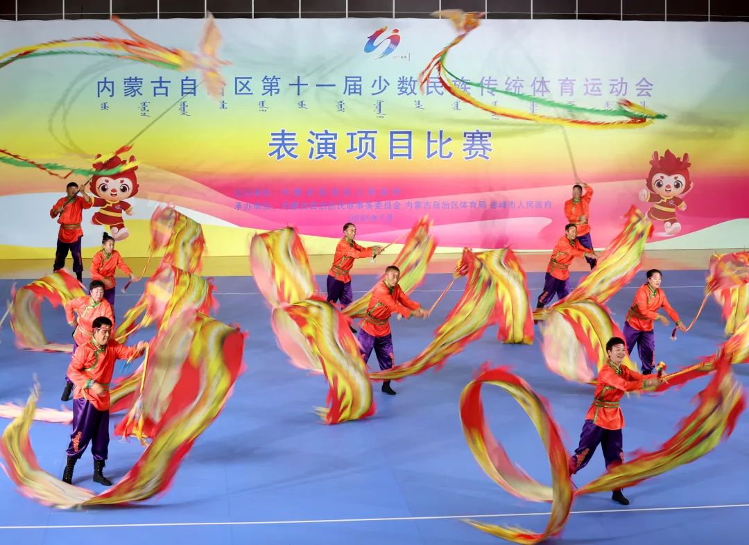 7月28日,内蒙古自治区第十一届少数民族传统体育运动会表演项目比赛在赤峰市体育一中心体育馆主馆举行,共有十一支代表队参加。