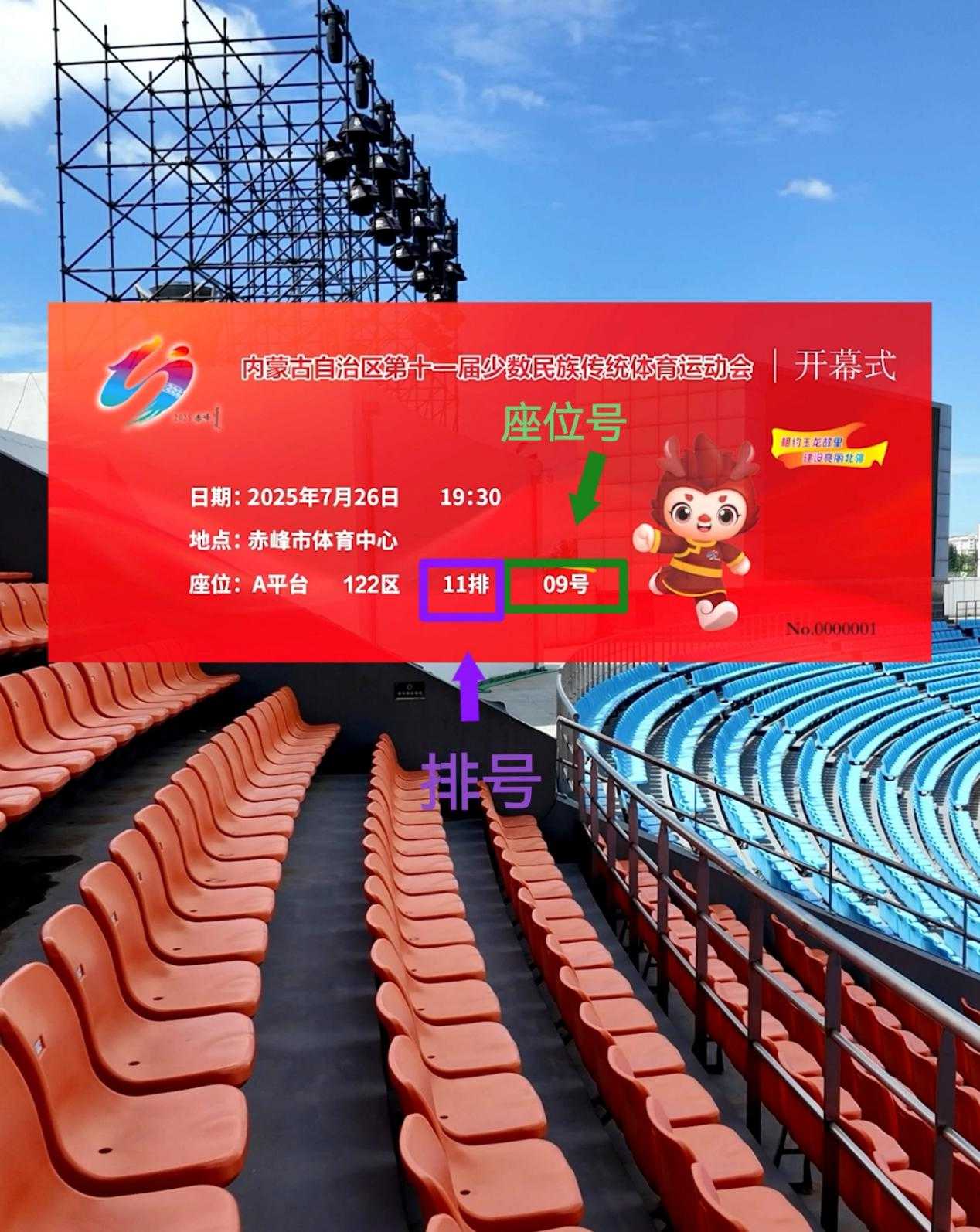 东二门位置:赤峰学院西门斜对面,宝山路与解放西街交叉口南200米。自驾观众导航搜索“赤峰体育中心东二门”(注意:将车停放在封闭区域外)