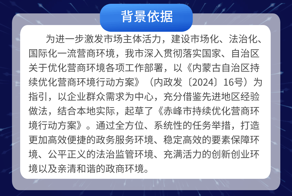 相关文件链接:赤峰市人民政府关于印发赤峰市持续优化营商环境行动方案的通知