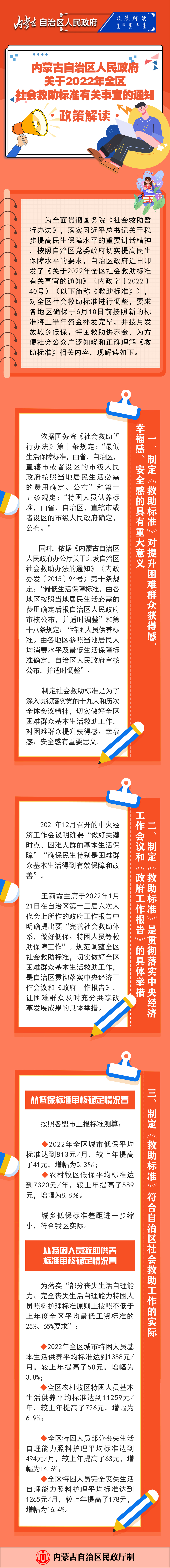 相关文件链接:内蒙古自治区人民政府关于2022年全区社会救助标准有关事宜的通知