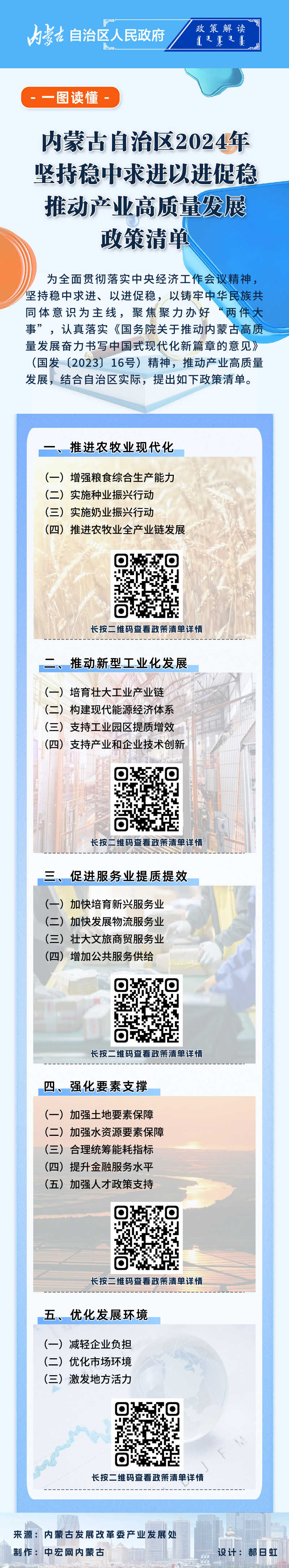 相关文件链接:内蒙古自治区人民政府关于印发自治区2024年坚持稳中求进以进促稳推动产业高质量发展政策清单的通知