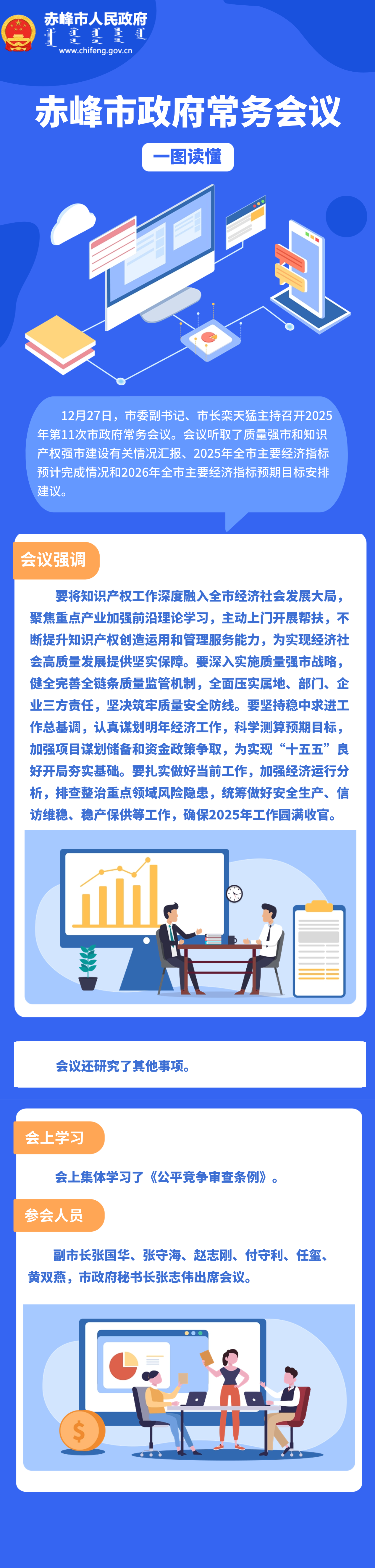 会议强调,要将知识产权工作深度融入全市经济社会发展大局,聚焦重点产业加强前沿理论学习,主动上门开展帮扶,不断提升知识产权创造运用和管理服务能力,为实现经济社会高质量发展提供坚实保障。要深入实施质量强市战略,健全完善全链条质量监管机制,全面压实属地、部门、企业三方责任,坚决筑牢质量安全防线。要坚持稳中求进工作总基调,认真谋划明年经济工作,科学测算预期目标,加强项目谋划储备和资金政策争取,为实现“十五五”良好开局夯实基础。要扎实做好当前工作,加强经济运行分析,排查整治重点领域风险隐患,统筹做好安全生产、信访维稳、稳产保供等工作,确保2025年工作圆满收官。